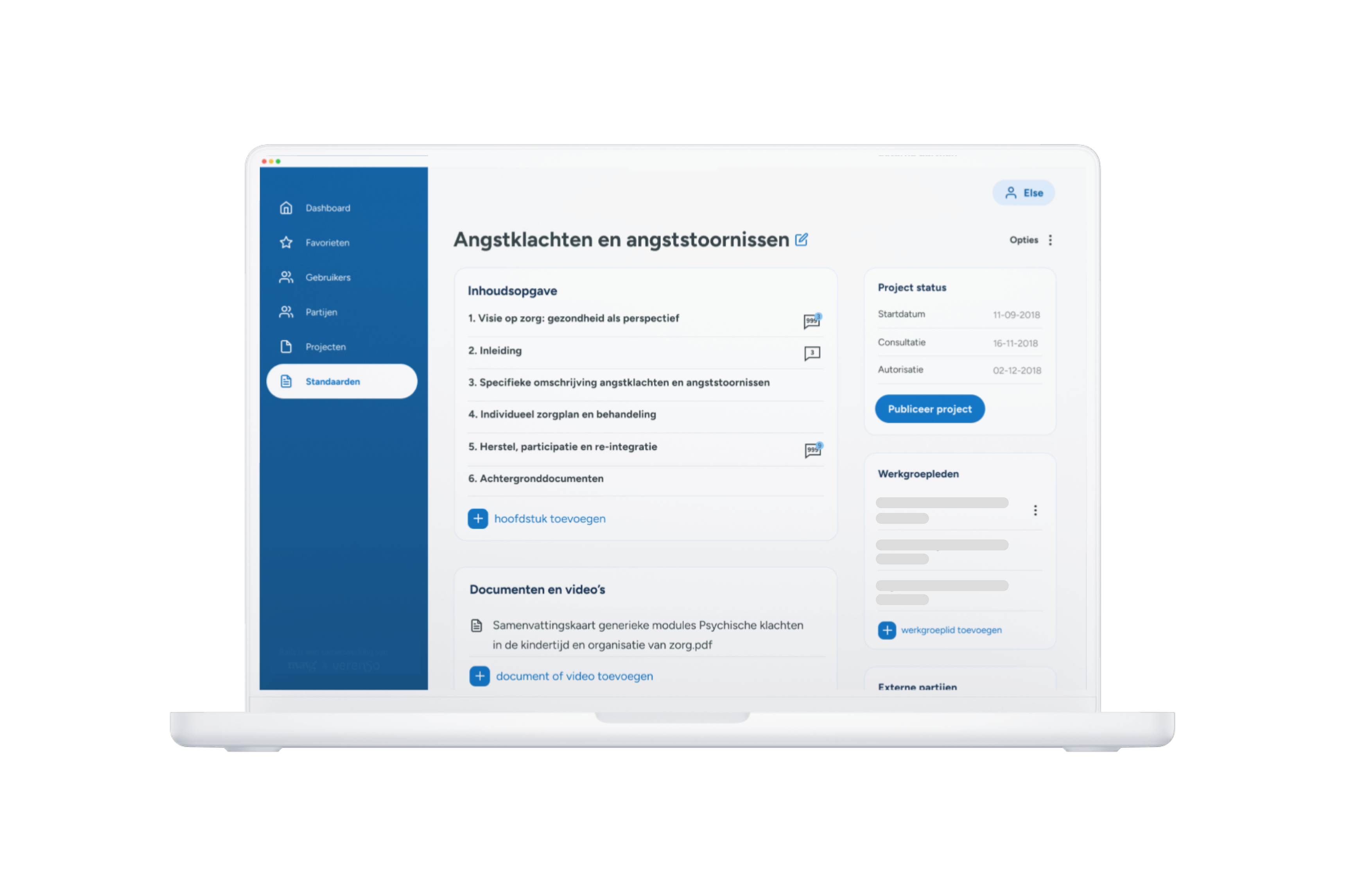 De procesbegeleider of richtlijnadviseur maakt een nieuwe richtlijn aan en nodigt betrokken stakeholders uit als klankbordgroeplid, werkgroeplid, externe partij lid of procesbegeleider. Werk eenvoudig samen met een oneindig aantal interne als externe gebruikers, zonder extra kosten. Je hebt geen hulp van je IT-afdeling nodig; het gebruikersbeheer is eenvoudig en doe je gewoon zelf.